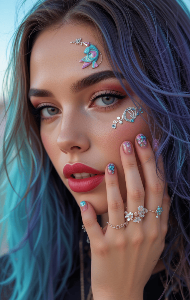 - Pro Tip: Apply a peel-off base coat for easy glitter removal post-festival.