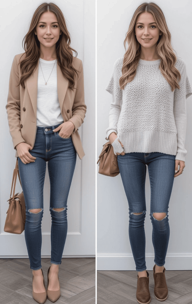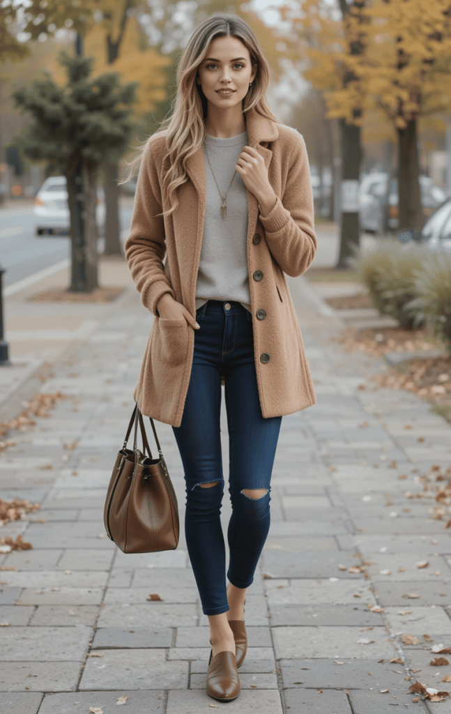 - Dark-Wash Jeans and Corduroy Pants: Perfect for adding warmth without being overly heavy.