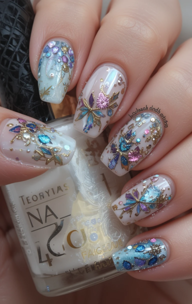 - 3D Embellishments: Rhinestones, pearls, and tiny charms add dimension.