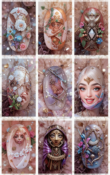- Bunny and Egg Art for Easter: Playful depictions of Easter eggs, bunnies, and polka dots in soft pastel tones.