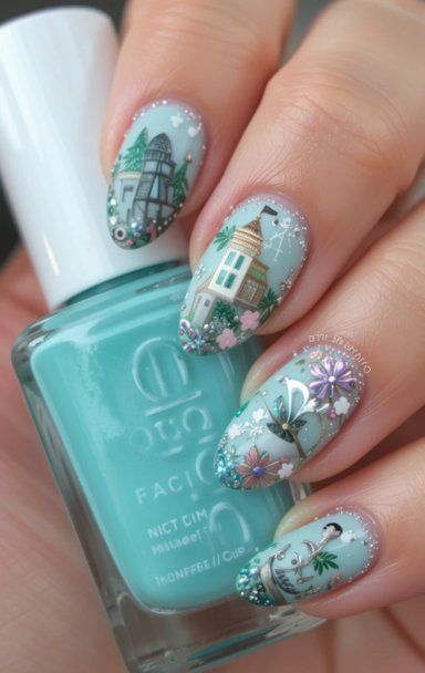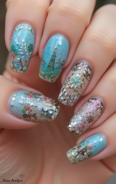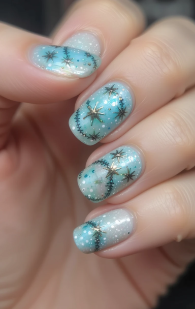 - Mermaid-Inspired Nails: Ocean blues and shimmery scales create an enchanting underwater effect.